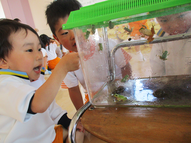 お友達と遊んだり、いろいろな素材を使って製作したり、合奏をしたり、季節の歌や絵画、体操をして過ごします。